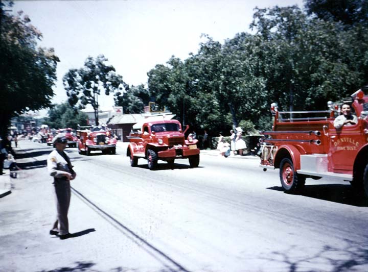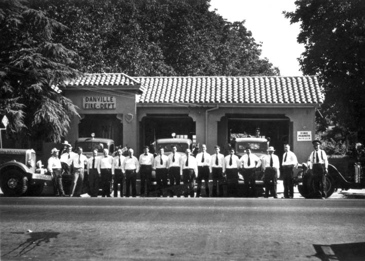 The Danville Fire Protection District refused the County's proposed consolidation of all special fire districts in May of 1937. In 1941, a two-way radio was installed between the firehouse and the County Sheriff, linking Danville with the rest of Contra Costa County. E.P. Watson, Kussen Burger and Gene Bell were assigned air raid warden duty at the fire house. By January of 1942, four men were appointed as firemen in Diablo. February brought a request for government defense funds for the fire department. In May, the Commission advised the Defense Council to have a man sleep in the fire house. And, in October, the Danville Fire Protection District entered the county mutual aid plan. In 1943, Manuel Brown was hired as a day man for $100 per month and the volunteers pay was raised to $1.00 per hour during response time. A fire in September burned the Danville Warehouse and Lumber Company hay barns 2, 3 and 4.