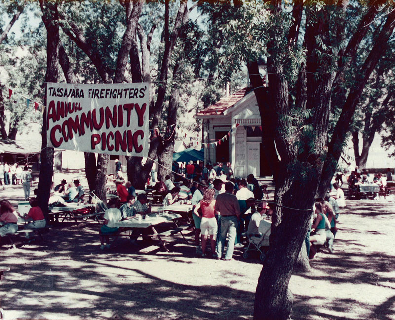 The District began with three fire trucks, fifteen volunteers, and a "Class 10" Pacific Fire Rating. Residents donated their barns and sheds to house the fire apparatus until they were needed to store their hay for the summer. Fire apparatus were old retired rigs from other departments that were purchased at county auctions. Replacement parts were purchased from junkyards and all mechanical/maintenance was performed by volunteers. Although the district was tax supported, it had no direct authority to levy taxes to help fund the department. Funding was raised through dances, BBQ's, donations, volunteer dues, and other events. TFD was also deeded the Tassajara school house on Finley Rd. The school house was where all board meetings and events were held. The TFD was responsible for restoring the school and for general upkeep. The old school house became a very important part of the district because it became a place where fire department personnel and the community could come together.